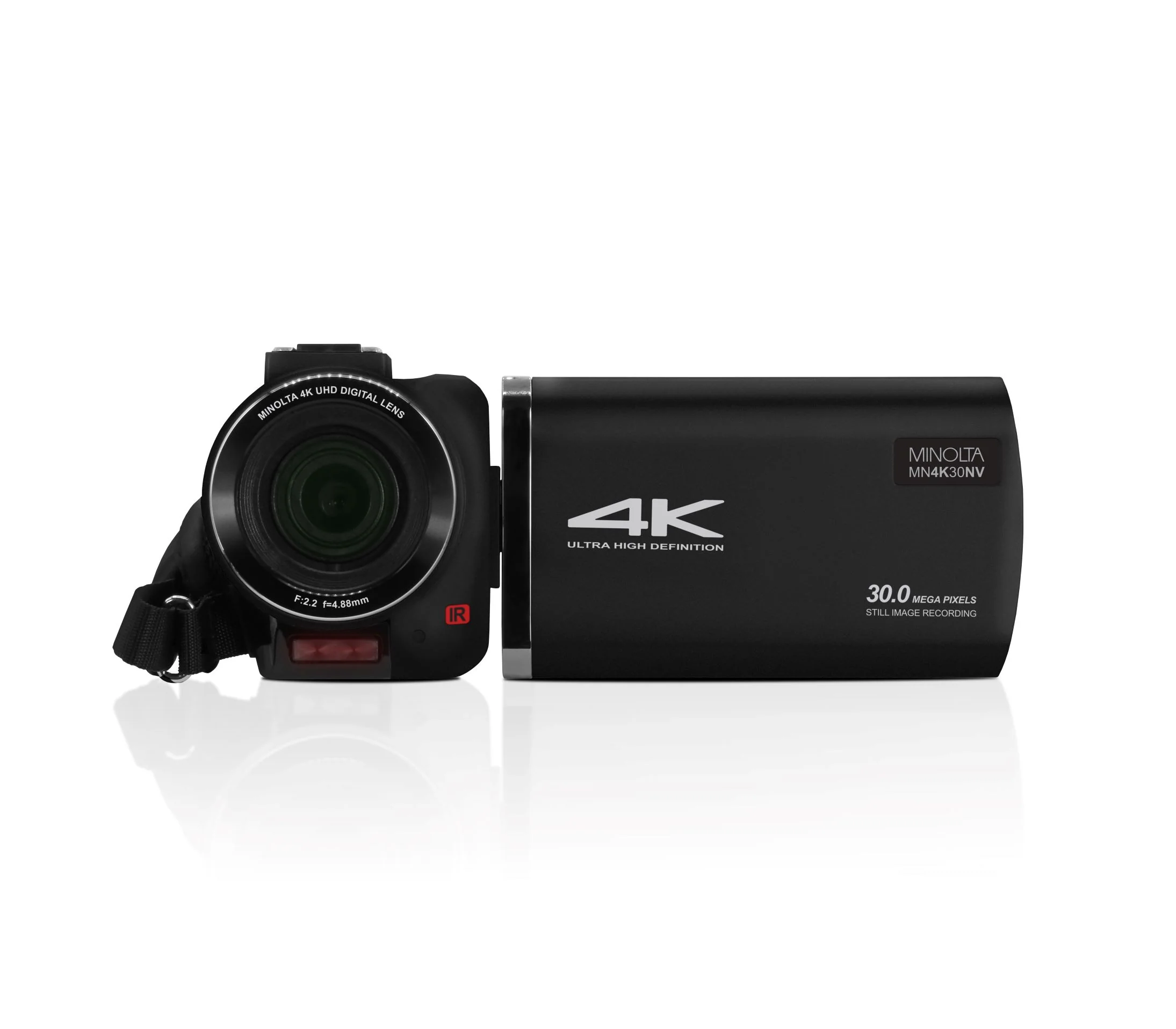 MINOLTA's MN4K30NV Camcorder records video content in 4K Ultra HD video and captures photos in 30 Mega Pixel resolution. Loaded with features, it includes a 16x digital zoom, anti-shake stabilization, face detection and a 3.0" high-resolution touch LCD. Its Night Vision capability uses an advanced infrared sensor that illuminates the scene in low light conditions. Easily add accessories with the integrated accessory-shoe mount. Included in the bundle are an AC adaptor, Li-ion battery, remote control and 32GB SD card for hours of recording and hundreds of photos.